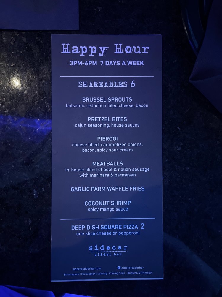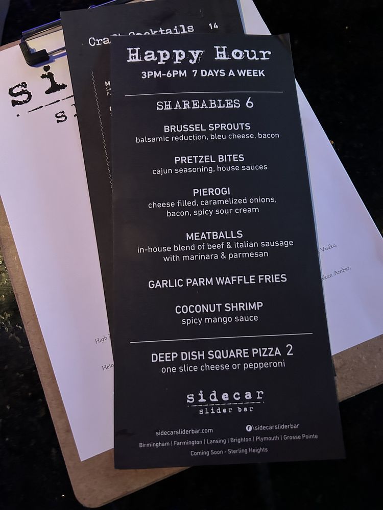 Introducing Sidecar Slider Bar, a hot spot in Birmingham, MI, that offers a unique blend of hot dogs, cocktails, and wine in a casual setting. With amenities like delivery, takeout, outdoor seating, and happy hour specials, Sidecar is a go-to destination for those seeking a laid-back dining experience.